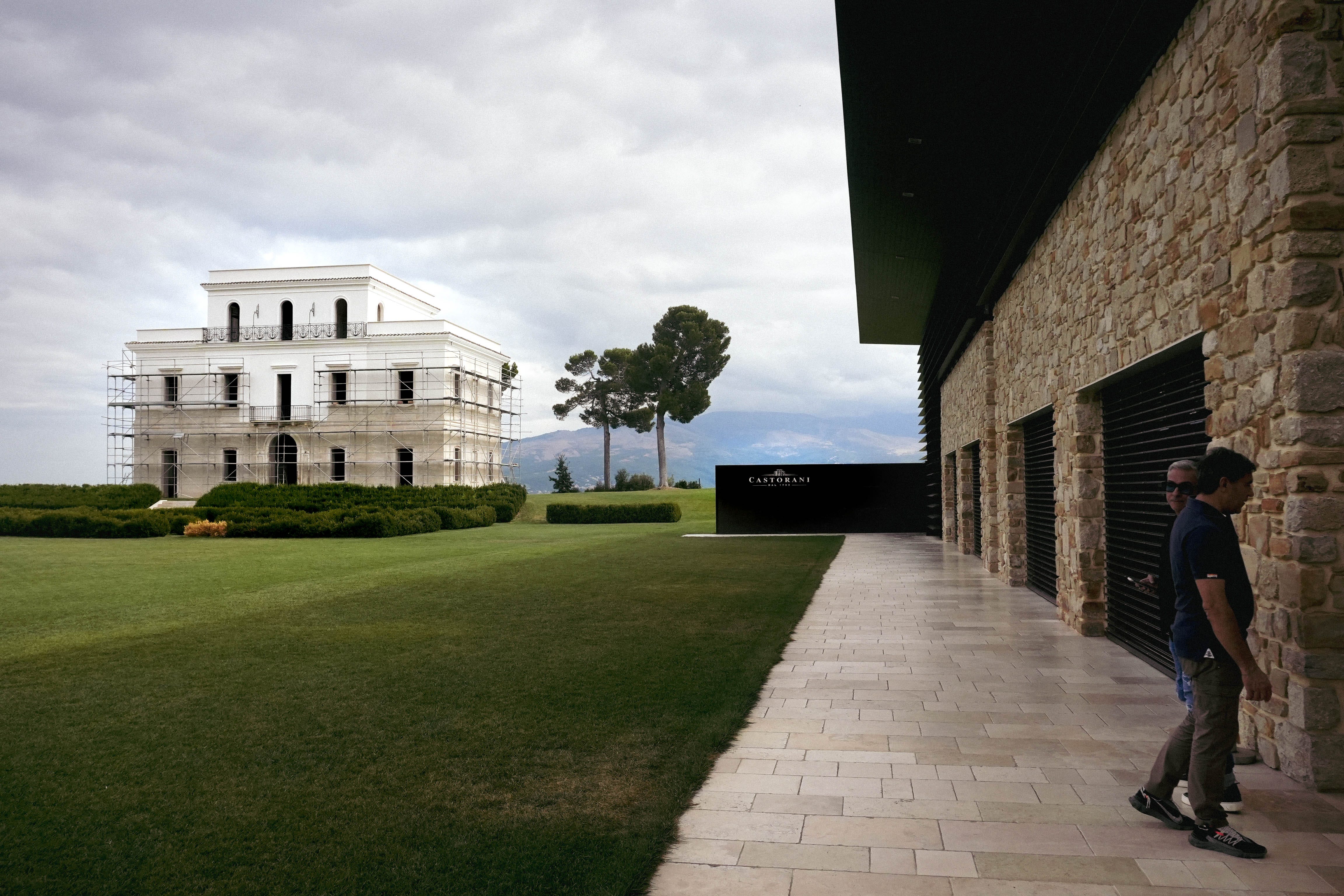After we worked up an appetite, we arrived at Castorani Winery, greeted by stunning views of their vineyards and gorgeous estate. Podere Castorani spans about 100 hectares of organic vines, where old Montepulciano grapes thrive in the bold Abruzzo terroir. We even saw the Montepulciano grapes arriving from harvest, destined for a unique appassimento-style wine, which later wowed us with its concentrated flavors. The winery is part of the Casauria DOCG, a newer designation pending EU approval that showcases wines that truly capture Abruzzo’s natural beauty. This estate was revived by F1 driver Jarno Trulli, who brought his own passion and precision from the fast lane to the vineyard.