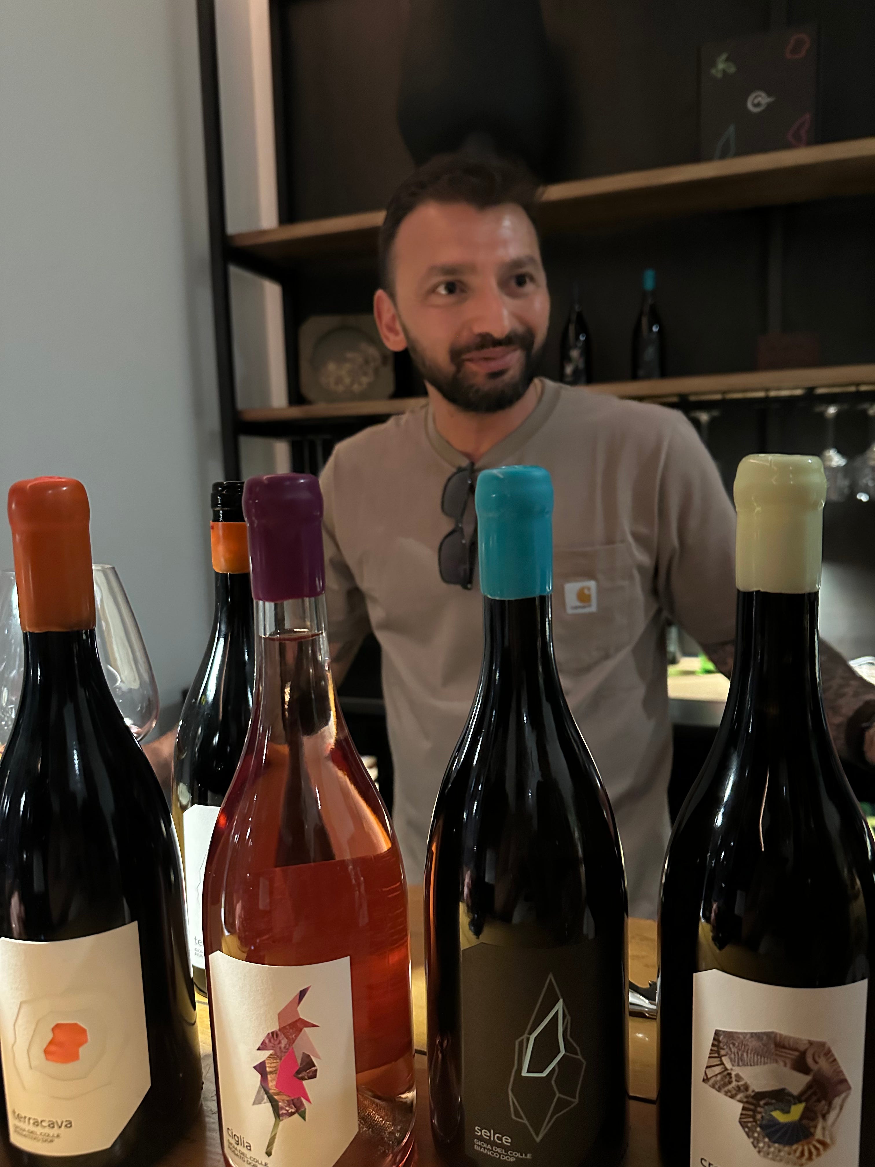 Pasquale went right to work behind the bar, generously pouring us his full range of wines, including two whites, a rosato, two Primitivo, and one international blend of Merlot and Cabernet Sauvignon. While the Primitivo wines from Gioia del Colle were clean and well-made, the standout wine for me was the 100% Minutolo called Cretaceo. I’ll cover Minutolo in my coming newsletter diving into the indigenous varieties discovered on this trip, but know this wine was precise on the palate with lifted freshness and a delicate floral framework.